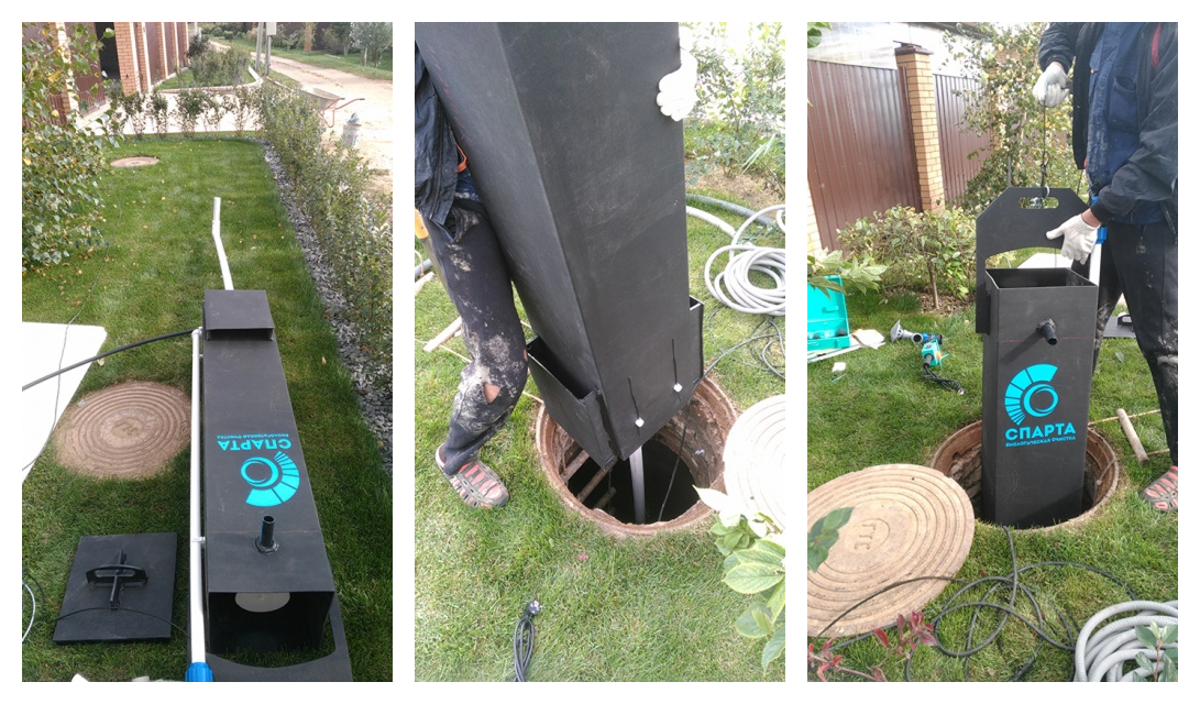 Для запуска биореактора «Спарта», надо поместить модуль очистки в сточные воды, подключить компрессор через резиновый шланг или ПП-трубу к модулю. Уровень биозагрузки должен находиться на уровне канализационных стоков.